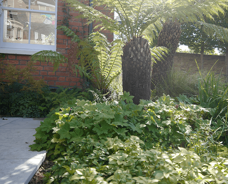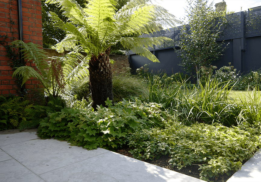 An open corner plot was transformed into a garden providing areas for entertaining and play. Magnolia, Birch and Dicksonia Antartica were used to provide structure and height. Herbaceous perennials and grasses provide year round interest.